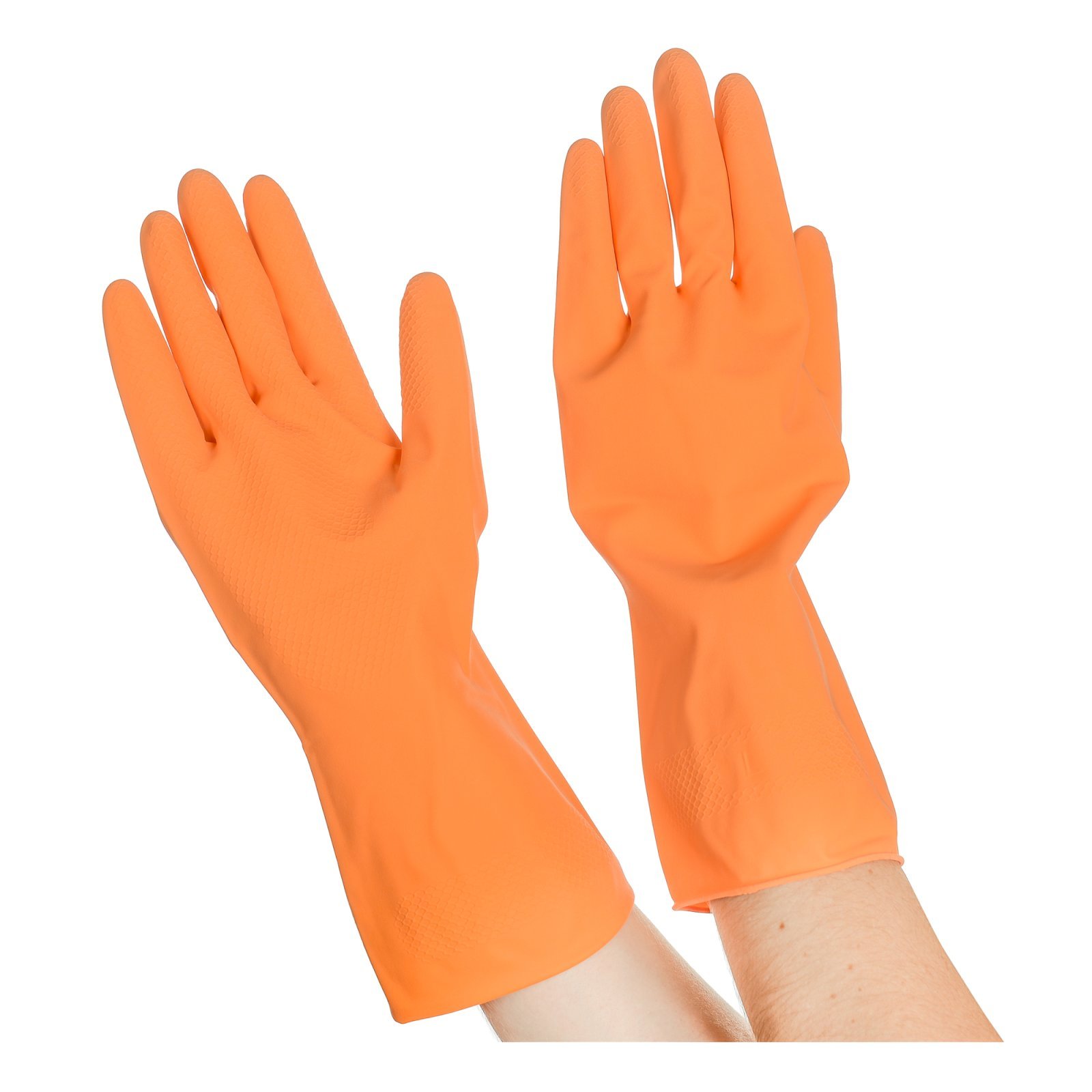 Перчатки резиновые хозяйственные Optilineприменяются для защиты рук во время уборки, стирки, мытья посуды, садовых и ремонтных рабор. Надежно защищают руки от воздействия влаги, грязи, механических повреждений. Внутреннее напыление из хлопка обеспечивает комфорт при использовании, позволяет легко снимать и надевать перчатки. Имеют противоскользящий текстурированный рисунок на ладони и пальцах для надежного захвата предметов. Размер М. Поставляются в полиэтиленовой упаковке.